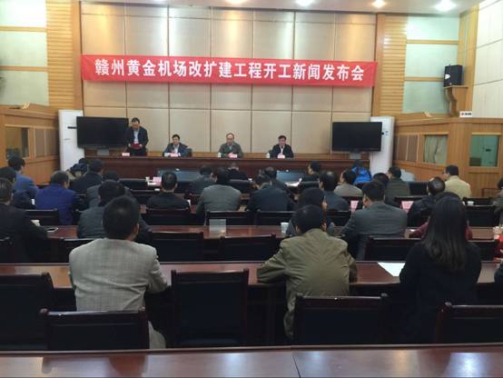市政府召開贛州黃金機(jī)場改擴(kuò)建工程開工新聞發(fā)布會(huì)。圖為發(fā)布會(huì)現(xiàn)場。