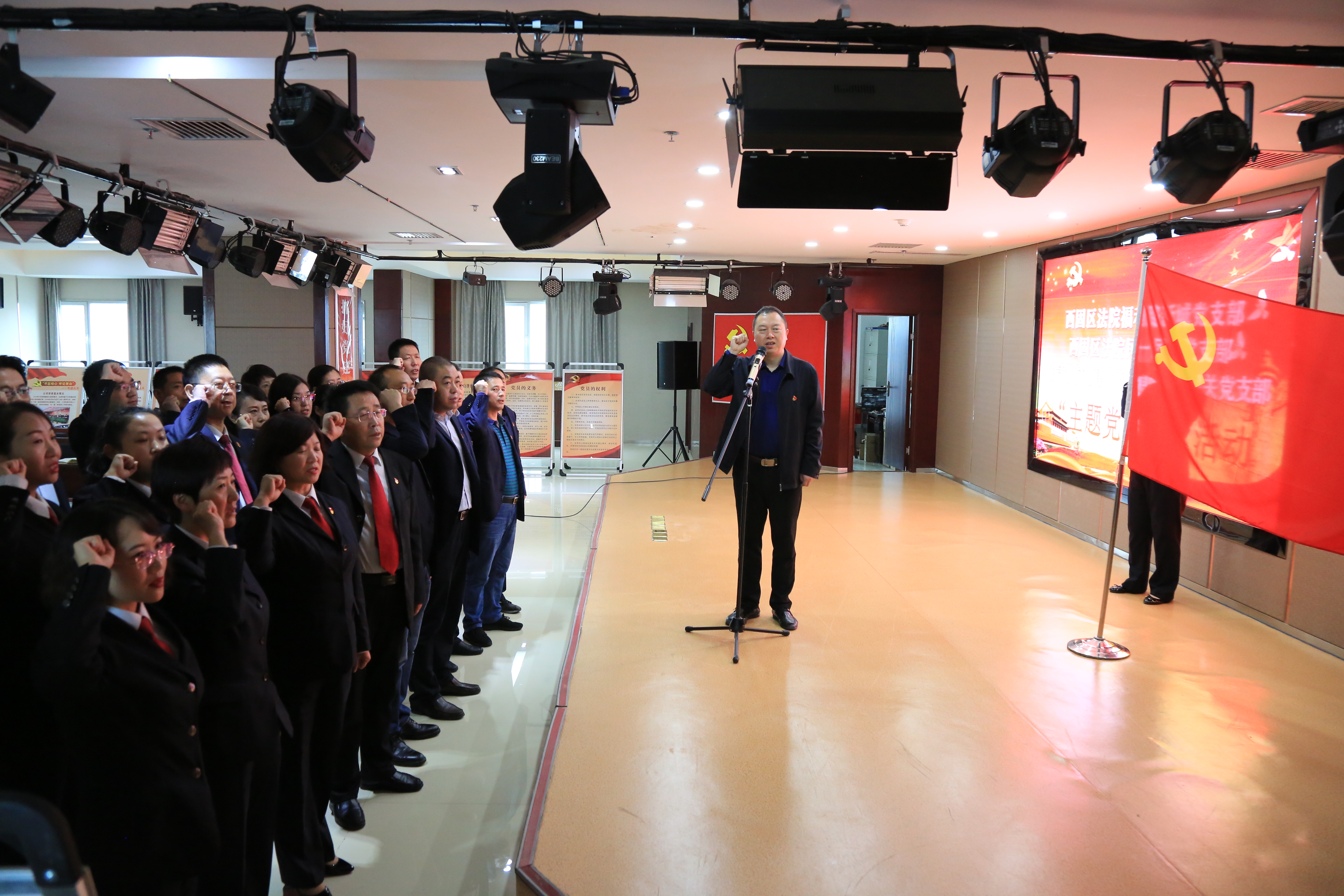 正值第二批“不忘初心、牢記使命”主題教育開(kāi)展之際,又恰逢國(guó)慶假期第一周,舉國(guó)上下還沉浸在慶祝新中國(guó)成立70周年的喜悅氛圍中。10月9日,在西固法院分管院長(zhǎng)帶領(lǐng)下,民一民二黨支部和福利路新城法庭黨支部深入我司開(kāi)展“主題黨日+”和支部聯(lián)建活動(dòng)。