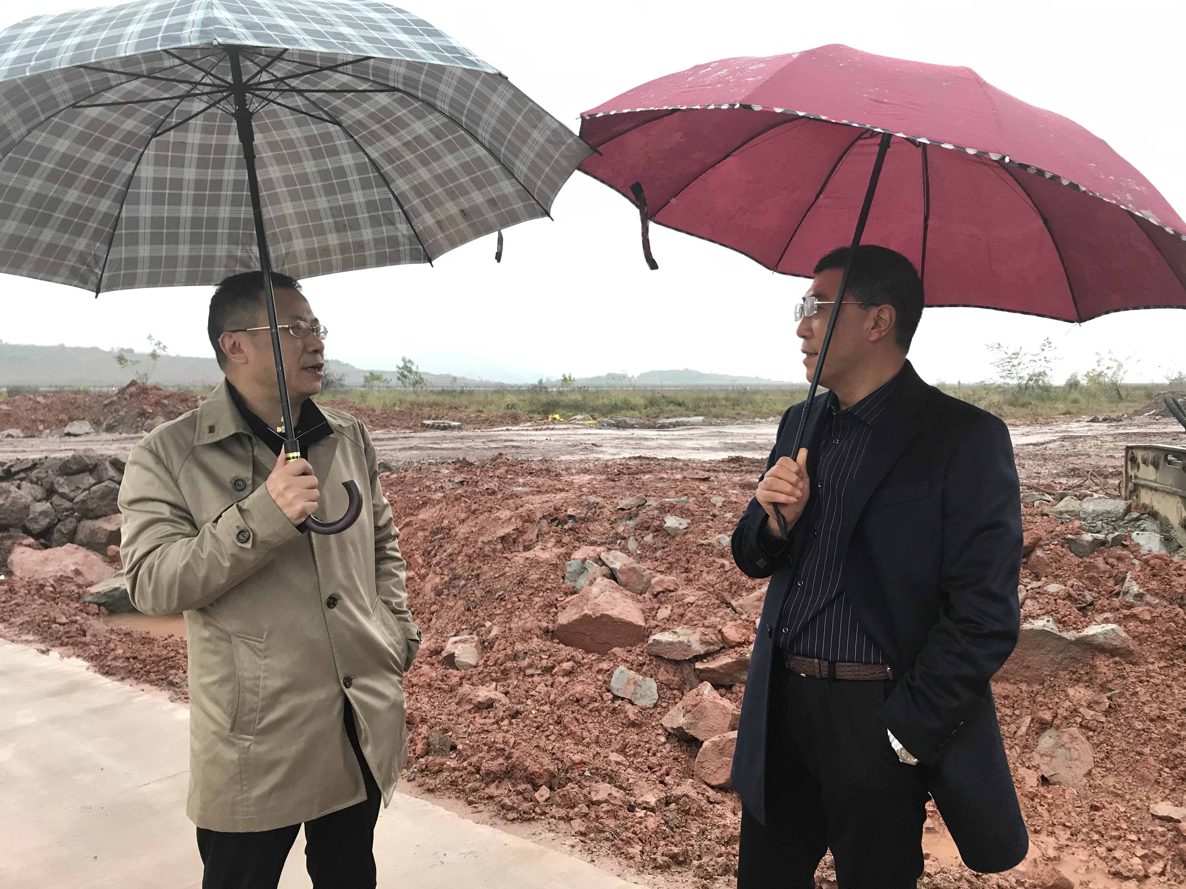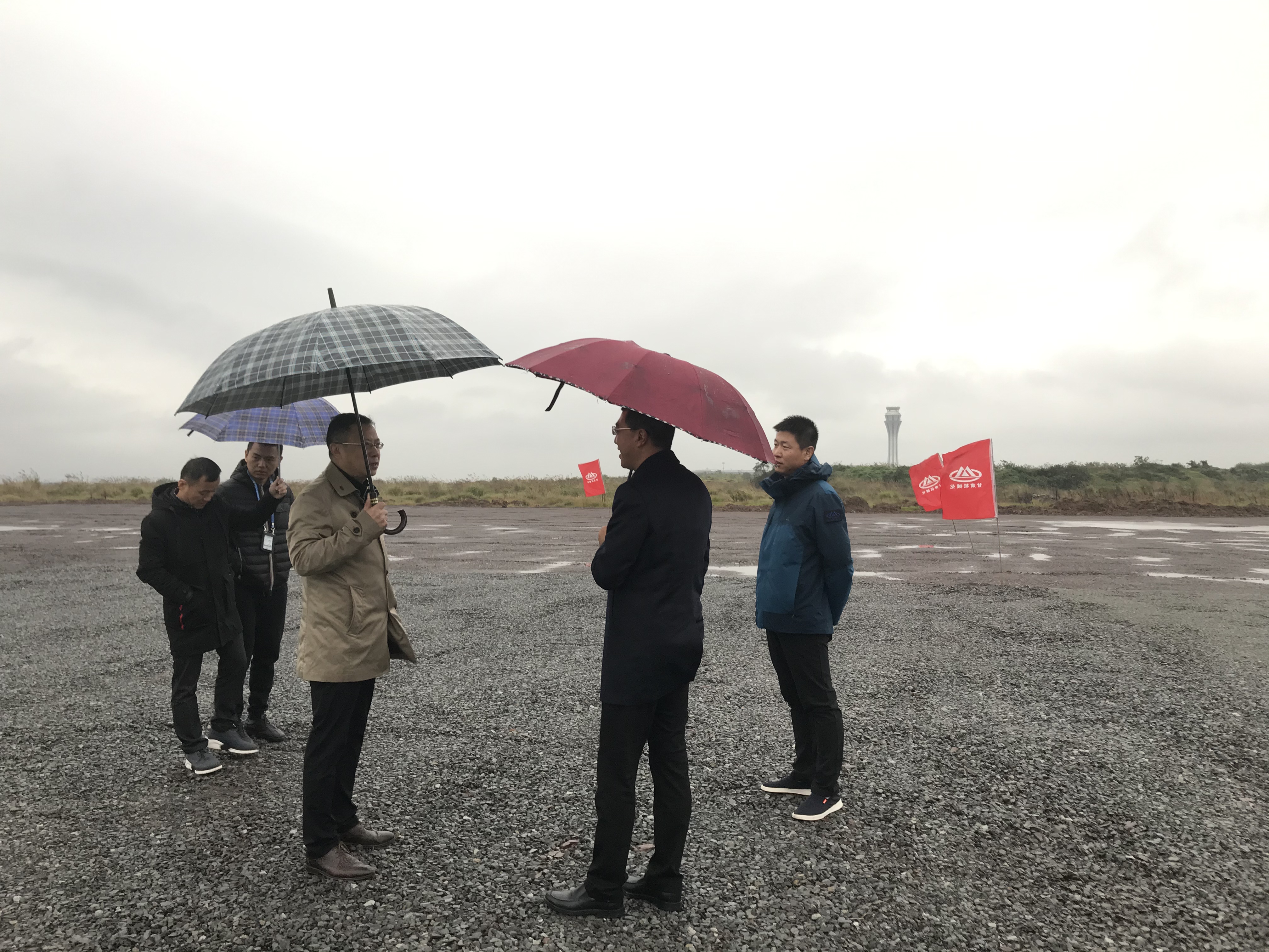 11月24日下午,伴隨著綿綿細(xì)雨,董事長陳想蕃應(yīng)重慶機(jī)場集團(tuán)有限公司副總經(jīng)理、重慶江北機(jī)場擴(kuò)建工程指揮長張明進(jìn)相約,在相關(guān)負(fù)責(zé)人的陪同下,對我司承建的重慶江北國際機(jī)場凈空應(yīng)急處置建設(shè)工程進(jìn)行實(shí)地查看。