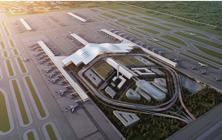 烏魯木齊機場改擴建工程是國家發(fā)改委、民航局、自治區(qū)“十三五”規(guī)劃重點建設項目,計劃投資約520億元,整個工程包括:50萬平方米航站樓、2條4F級民航最高級別跑道、177個停機位、9.3萬平方米綜合交通中心、25.1萬平方米停車場以及辦公、安檢、海關、航食、貨運、機務、能源、信息等配套設施。
