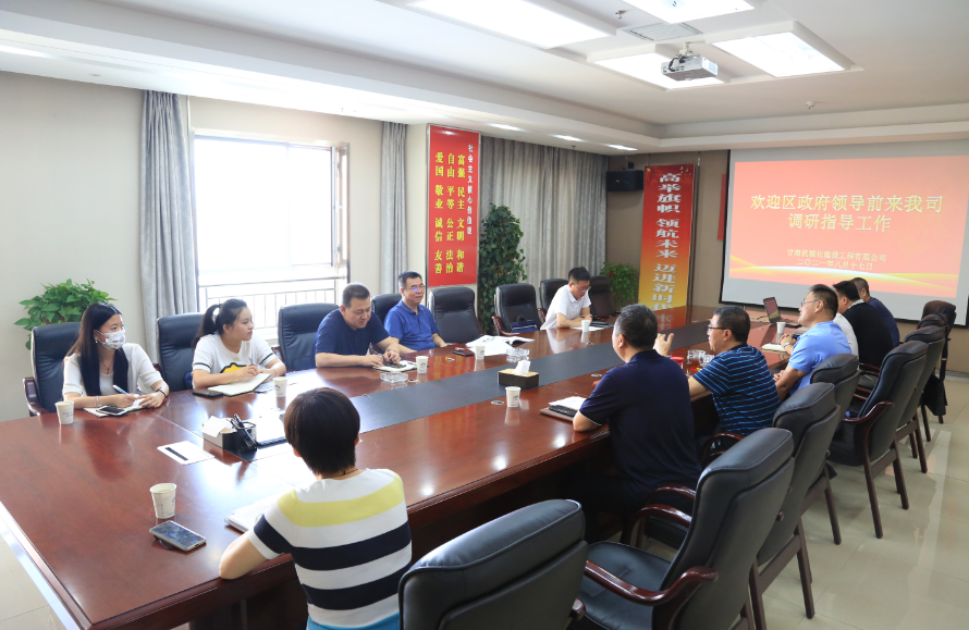 8月17日上午,西固區(qū)政府黨組成員、副區(qū)長陳良一行蒞臨我司調(diào)研指導(dǎo)工作,公司領(lǐng)導(dǎo)及相關(guān)人員陪同并參加座談會。
